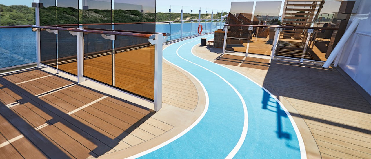 Oppdag de romslige solområdene på skipet. Enten solseng, hengekøye, basseng eller flotte tilfluktssteder for å slappe av som venter på deg! For alle gå og løpeentusiaster er en frilufts joggeløype tilgjengelig på dekk til bestemte tider. Bortsett fra dette er det en rekke aktiviteter for hele familien om bord!