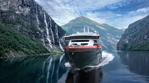La nye ekspedisjonsskipet MS Roald Amundsen ta deg til noen av verdens mest spektakulære steder. Naturen gjenspeiles i banebrytende skandinavisk design. Materialer som granitt, bjørk og ull skaper en avslappet og elegant følelse.