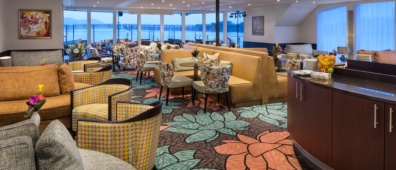 Enjoy regional flavors in the onboard Wine Tasting Room