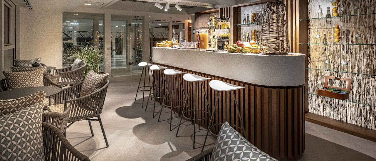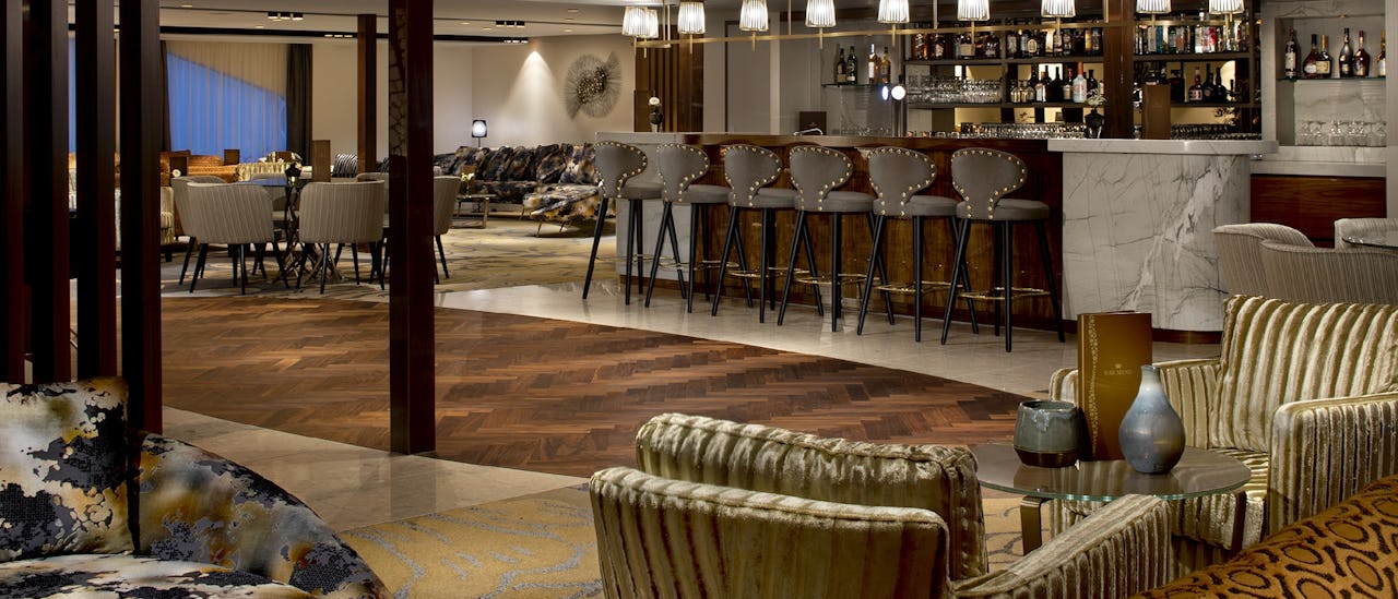Tilbring tid ved bassenget eller boblebadet, ta en drink på en av de fem barene ombord, inkludert popup-skybaren, i ett av to bibliotek ved peisen eller i den elegante kinoen ombord.