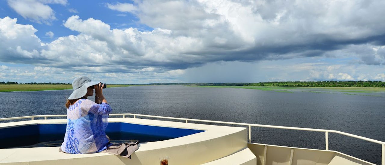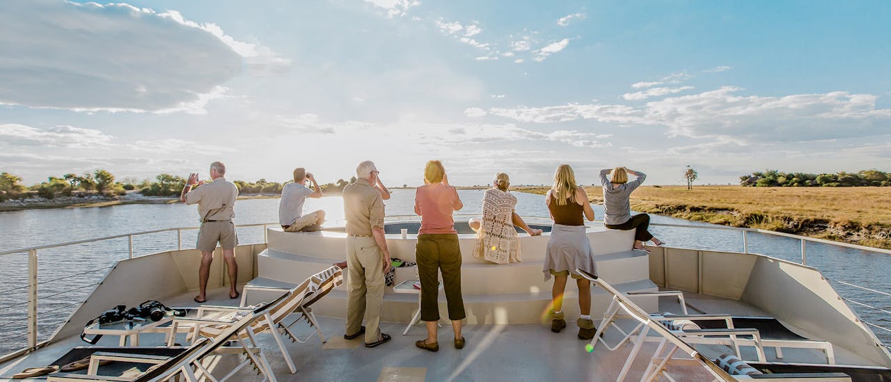 Den intime Zambezi Queen med 28 passasjerer, designet spesielt for å se på dyrelivet, debuterte på et av verdens mest fengslende steder, Afrikas legendariske Chobe-elv. Mens du driver langs elven, oppfatter dyrene ingen trussel, og gir deg kanskje en gang i livet opplevelse til nærvær av dyrene her.