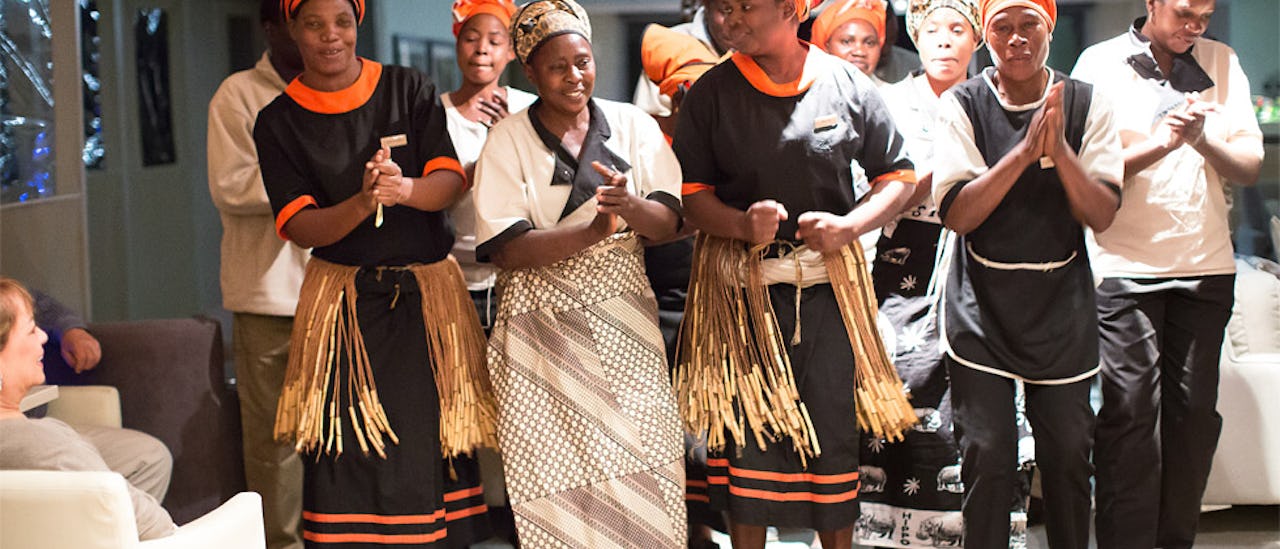 Nyt en middag med afrikansk tema med tradisjonelle retter og underholdning.