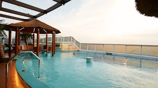 Besøk spa loungen eller slapp av i en behagelig solseng ved bassenget i voksen sonen Serenity.