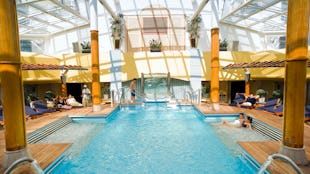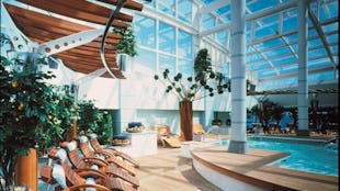 Skipets signaturkategori. Hele veggen mot havet kan åpnes slik at rommet fungerer som en balkong.