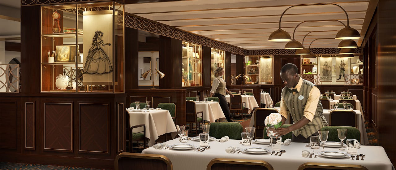 Måltidene er et uforglemmelig ferieminne ombord på Disney Wish! Her er tre hovedrestauranter og du "roterer" mellom restaurantene, noe som betyr at du spiser et annet sted hver kveld.