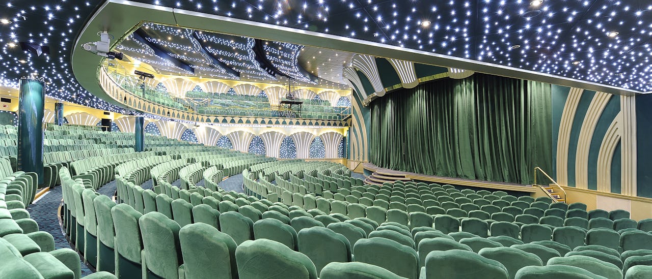 Om bord vil du oppdage et utvalg av kveldsunderholdning som inkluderer et spektakulært casino, disco, 4D-kino, sigar lounge, en luksuriøs teatersal med 1,200 seter og live musikk i barloungene. For de som foretrekker en roligere kveld, er det bare å trå ut på dekket for en romantisk drink under stjernene.