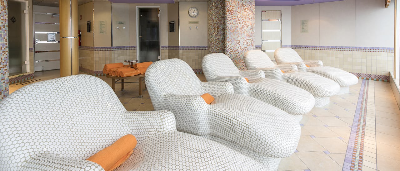 På øverste dekk finnes det flere flotte bassenger og jacuzzier, treningsstudio og spaavdelingen.