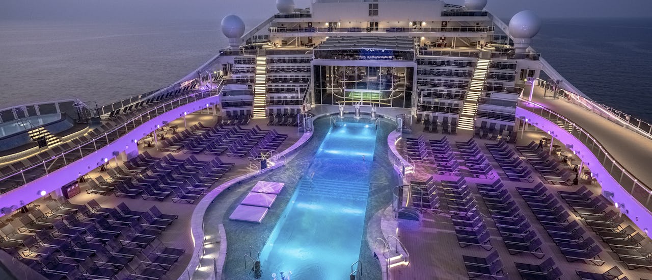 MSC Yacht Club tilbyr en privat opplevelse, inkludert er en restaurant, lounge og bar, basseng og mer