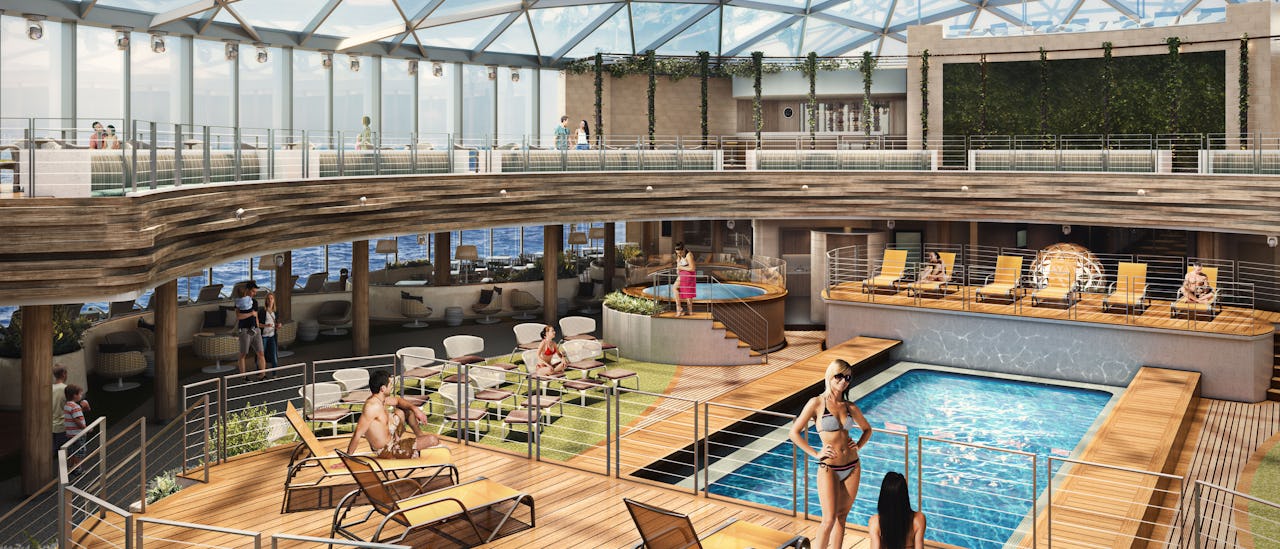 Det 970 m² store uttrekkbare SkyDome glasstaket er den spesielle underholdningsfunksjonen til skipet