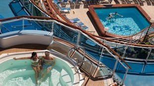 Unn deg en behandling på Lotus Spa og slapp av på bassengdekket, som er delt inn i ulike områder, hvorav ett er under tak.