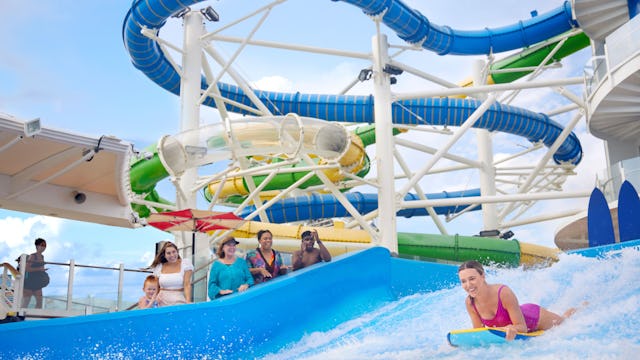 Surfebølgen Flowrider med Perfect Storm i bakgrunnen