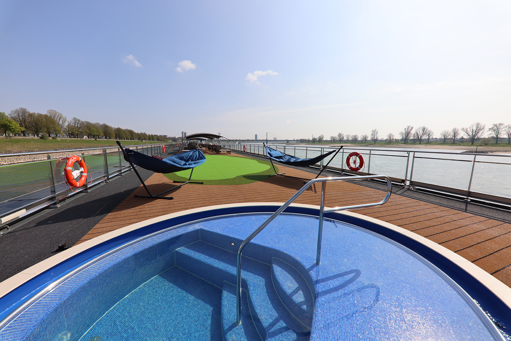 På soldekket finner dere basseng og panoramautsikt, mens treningsrom, spa-område med dampbad og sauna gir avslapning eller aktivitet etter dagsutflukter. Gratis sykler gjør det lett å utforske elvebredden på egen hånd.