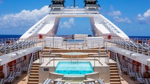 Enjoy a dip in the pool, the onboard watersports platform, library, spa and fitness center.