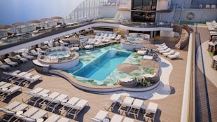 Slapp av på komfortable solsenger ved bassenget, og ta stillheten til et høyere nivå på Aquamar Spa + Vitality Center.